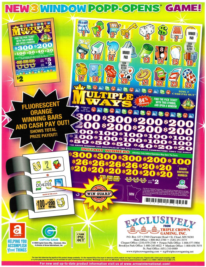 We treat our customers like royalty!Combine the impact of our incredibly creative and colorful graphics with our stunning variety of games. With many different play styles, sizes, shapes, ticket counts, and payout options to choose from, you're sure to find all kinds of winners!LEARN MORERaise Funds for Your CharityOrder Games $Here for all of your Electronic Gaming needse-Tabs Triple Crown Gaming has all of your gaming needs covered! Exclusives Diamond Chips Pull Tabs Jar Tickets Nuggets e-Tabs